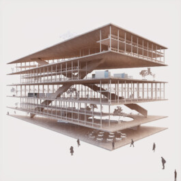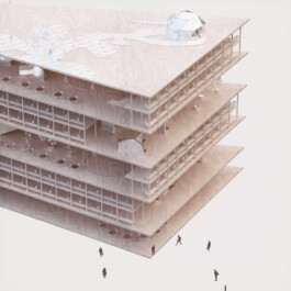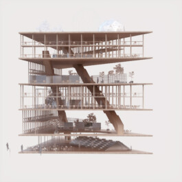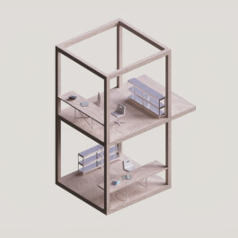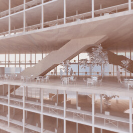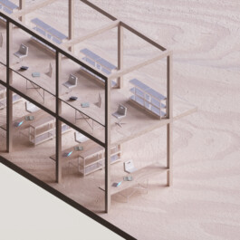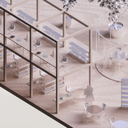 Since work in the humanities requires calm and concentration, our concept does only partially adopt typical new work environments. In addition, the individual office – an unpopular typology within the new work discourse – is not fundamentally questioned but updated in reference to the concept of the studiolo, a medieval typology for room cells for research and contemplation. The proposed concept envisions a building subdivided into large double-height storeys, in which two-level-structures of monastic room cells are juxtaposed with spacious and open workspaces.