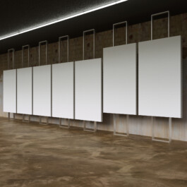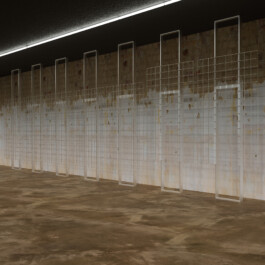 System Wall has been designed for the photography museum Fotografiska, located inside the listed Tacheles building in Berlin-Mitte. The client’s wish to use a spacious corridor as an additional exhibition space presented a unique challenge: How to create new exhibition walls within a narrow space that features listed graffiti, which must remain visible.